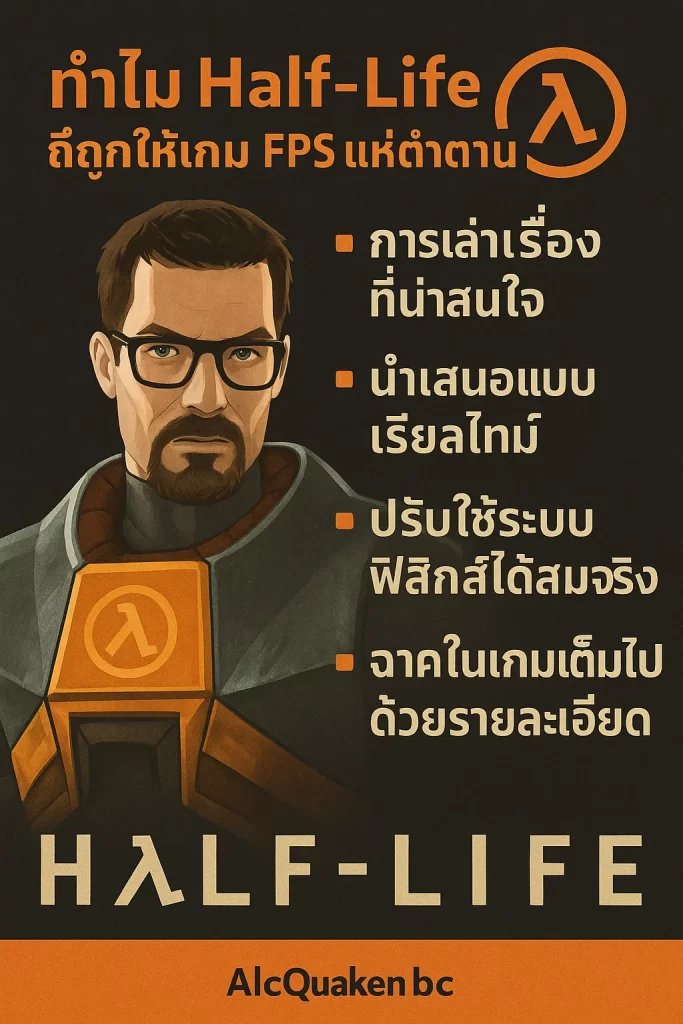 Half-Life ถูกยกให้เป็น “ตำนาน” ของเกม FPS ไม่ใช่เพียงเพราะความสนุก แต่เพราะมัน เปลี่ยนวิธีคิดของคนทำเกมและผู้เล่นทั้งวงการ จากห้องทดลอง Black Mesa จนถึงโลกที่ถูกควบคุมโดย Combine Half-Life ได้พิสูจน์ว่า “เกมสามารถเล่าเรื่องได้ทรงพลังพอ ๆ กับภาพยนตร์”